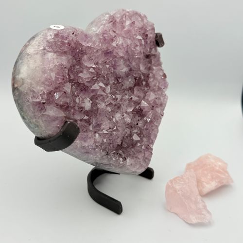 Breng rust, liefde en harmonie in je leven met een amethist hart op standaard van Gemstone Online. Bestel vandaag nog en ervaar de unieke combinatie van natuur, energie en elegantie. Zie ook: amethist hart op standaard (nr.7)