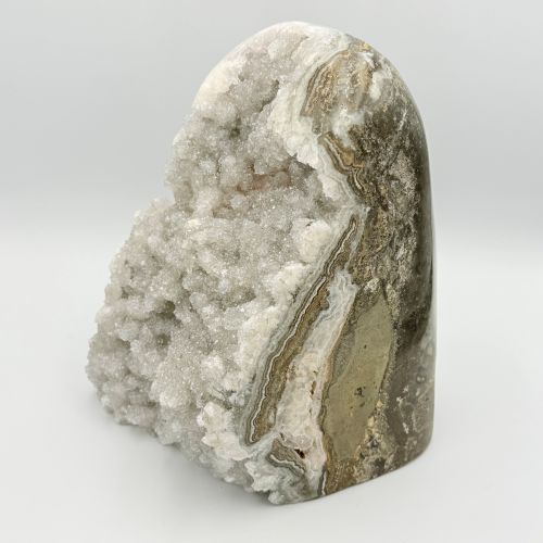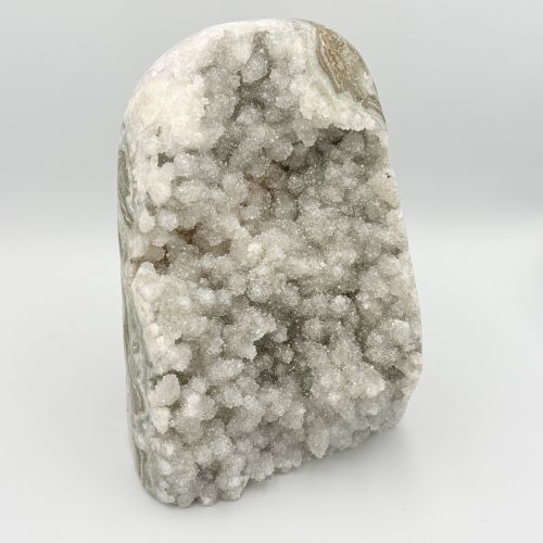 Deze bijzondere serie amethisten is een ware ode aan de schoonheid van de natuur. Elk stuk uit deze collectie is uniek en valt op door spectaculaire formaties van kristallen, waarbij bloemachtige structuren en kleine torentjes op natuurlijke wijze zijn gevormd. De combinatie van diepte, vorm en schittering maakt deze amethisten echte blikvangers.