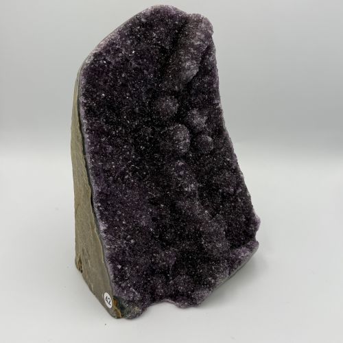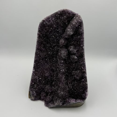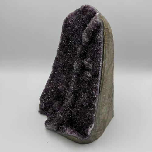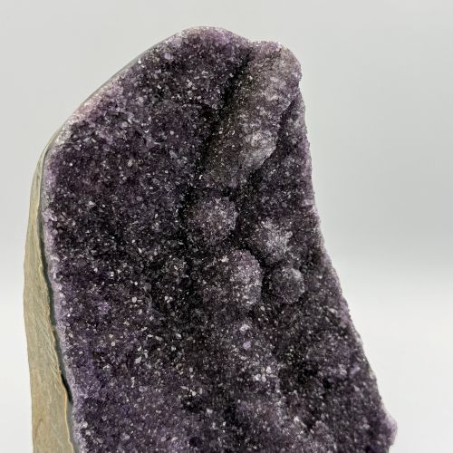Deze bijzondere serie amethisten is een ware ode aan de schoonheid van de natuur. Elk stuk uit deze collectie is uniek en valt op door spectaculaire formaties van kristallen, waarbij bloemachtige structuren en kleine torentjes op natuurlijke wijze zijn gevormd. De combinatie van diepte, vorm en schittering maakt deze amethisten echte blikvangers.