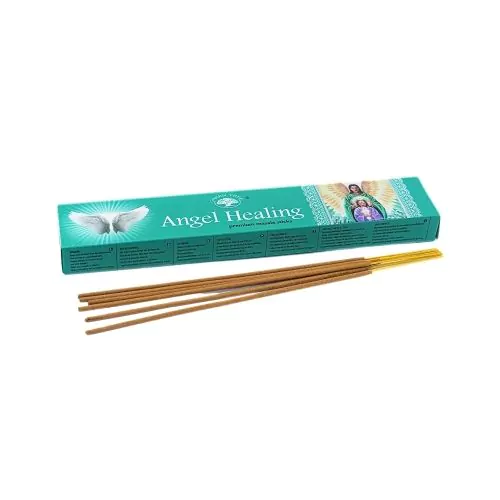 Angel Healing Natural Masala Wierook geniet van de natuurzuivere geuren van deze wierook. De brandduur van deze extra lange wierookstokjes is ca. 45 minuten. De wierook symboliseert de kostbare natuurproducten die ontdekt worden tijdens wereldreizen over verschillende continenten, door allerlei culturen en onbekende uithoeken. Het brengt een rugzak vol schatten mee terug, die je onder andere terugvindt in de thematische geur van Angel Healing.