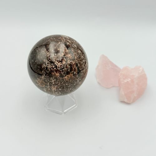Deze intens roodbruine Granaatbol met een doorsnede van 6,0 cm en een gewicht van 348 gram is een krachtige edelsteen voor iedereen die behoefte heeft aan vitaliteit, motivatie en innerlijke stabiliteit. Granaat wordt gezien als een steen van doorzettingsvermogen en levensenergie..