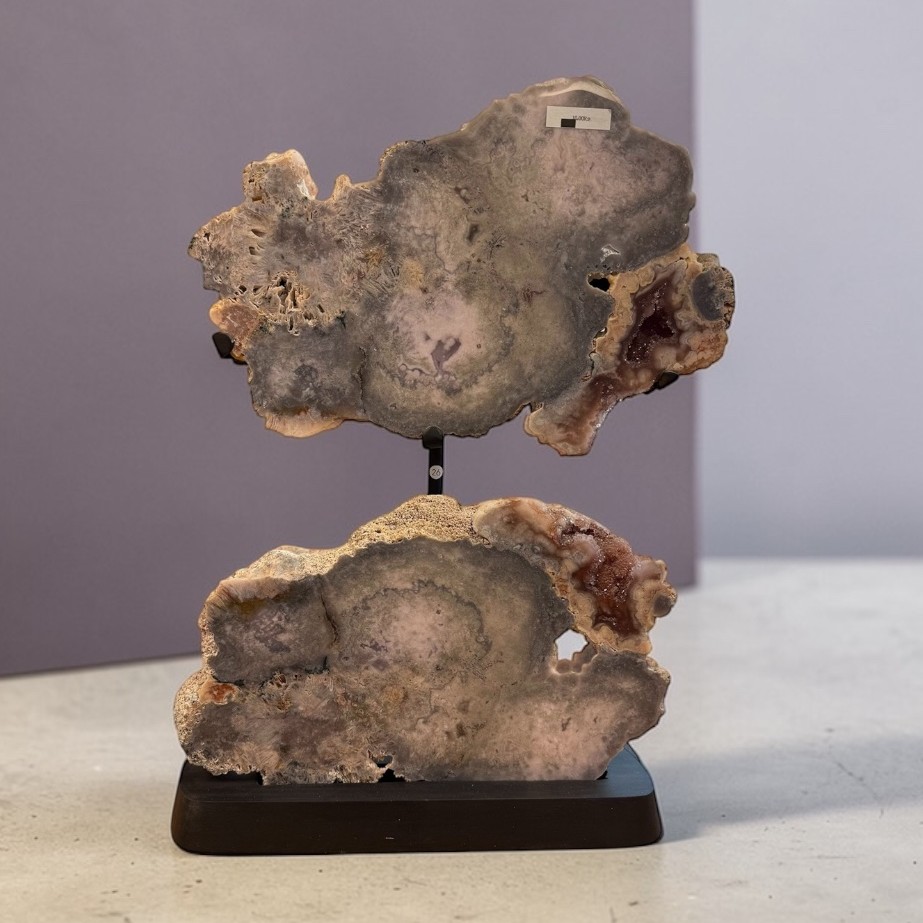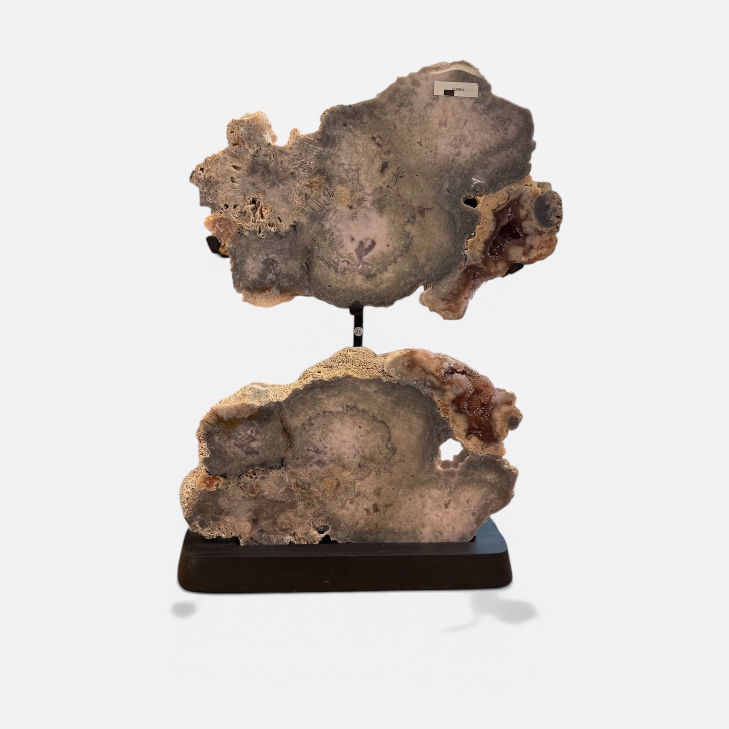 Ontdek de kracht van verbinding met de Twin Souls Collection van Gemstone Online, dé specialist in amethist en edelstenen met betekenis. Deze bijzondere serie bestaat uit unieke roze amethist slabs, zorgvuldig doorgezaagd in twee helften. En prachtig gepresenteerd boven elkaar op een elegante standaard. Twee delen, afkomstig uit één steen – een perfect symbool van eenheid, harmonie en liefde.