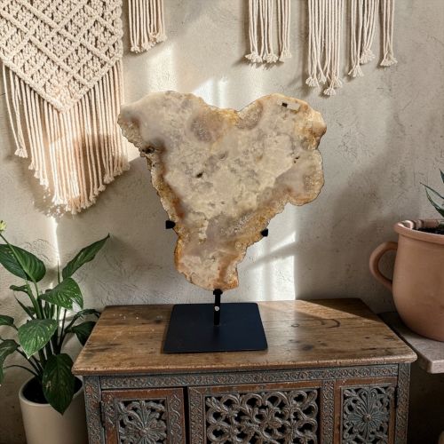 Roze amethist staat bekend als een steen van rust, compassie en emotionele heling. Ze helpt het hart te openen, bevordert zelfliefde en versterkt de energetische verbinding tussen mensen. De zachte, warme tinten van de steen brengen harmonie in elke ruimte en zorgen voor een serene, liefdevolle sfeer.